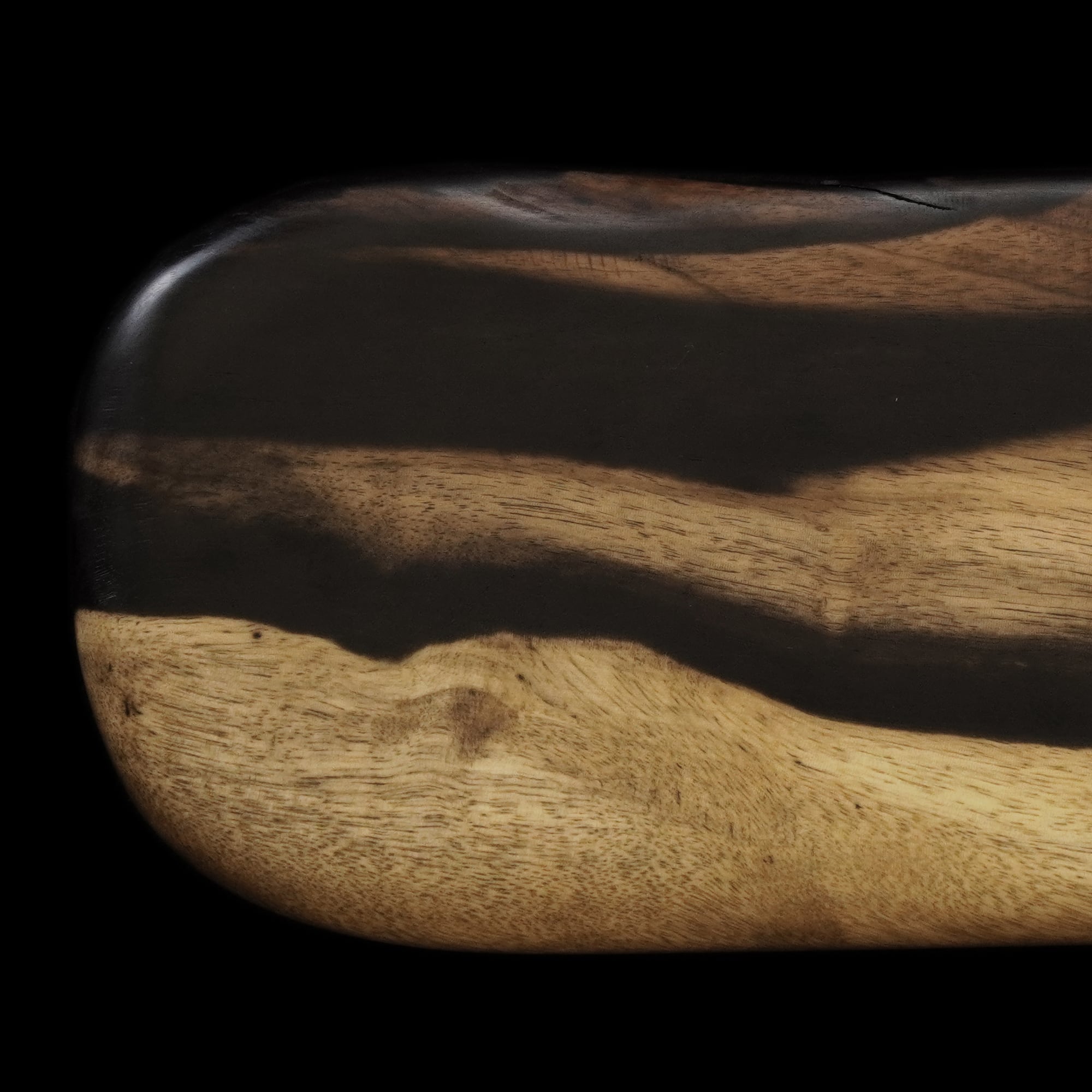 「黒柿」は一万本に一本ともいわれる割合で黒色の縞や柄が生じたとても希少な木材です。このプレートはAIR STUMP/STUMPLUSの天板としてもお使いいただけます。※上部に凹凸や割れがあります。気にされる方はご遠慮ください。※この商品は木工作家による1点ものです。