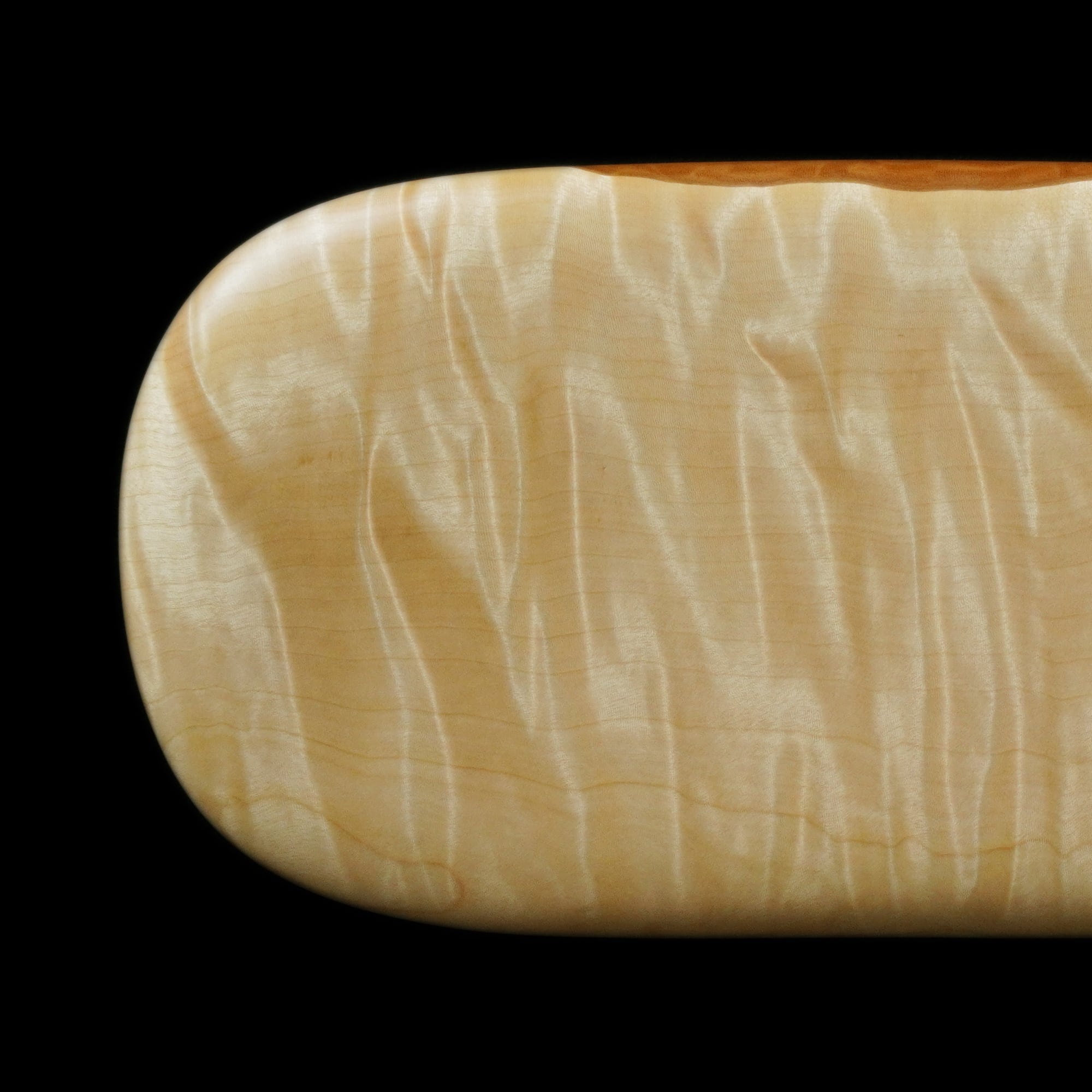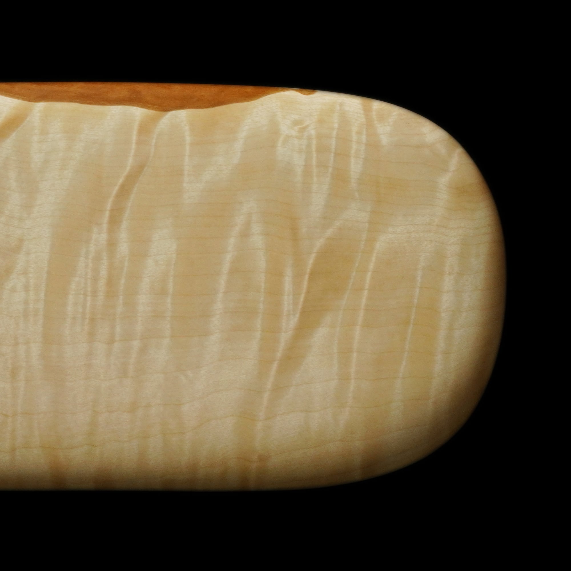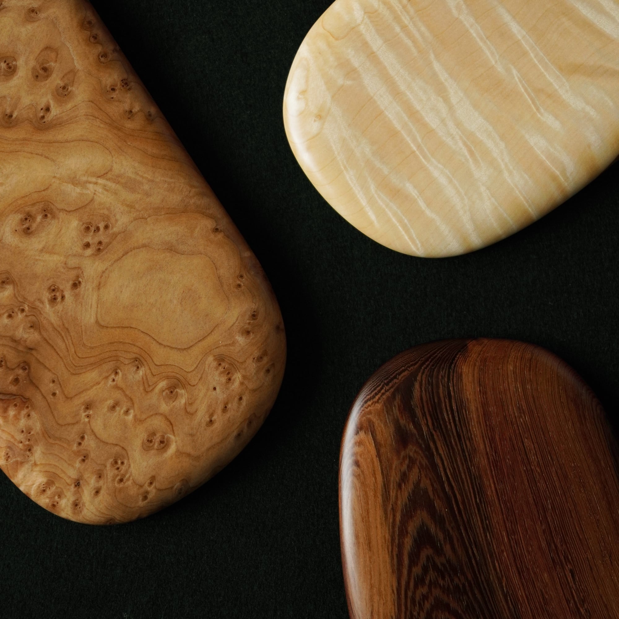 長期間に渡り自然乾燥された木材のみを厳選し、銘木の材質や模様に合わせてひとつひとつ丁寧に磨きあげています。研磨後はシリカを主原料とした撥水性や防水性のあるセラミック塗料で複数回浸透と乾燥を繰り返し、蜜蝋ワックスで仕上げております。すべて食品安全基準試験をクリアした塗料を使用。木材の加工のため研磨時の細かなキズ跡が残る場合がありますがご了承ください。