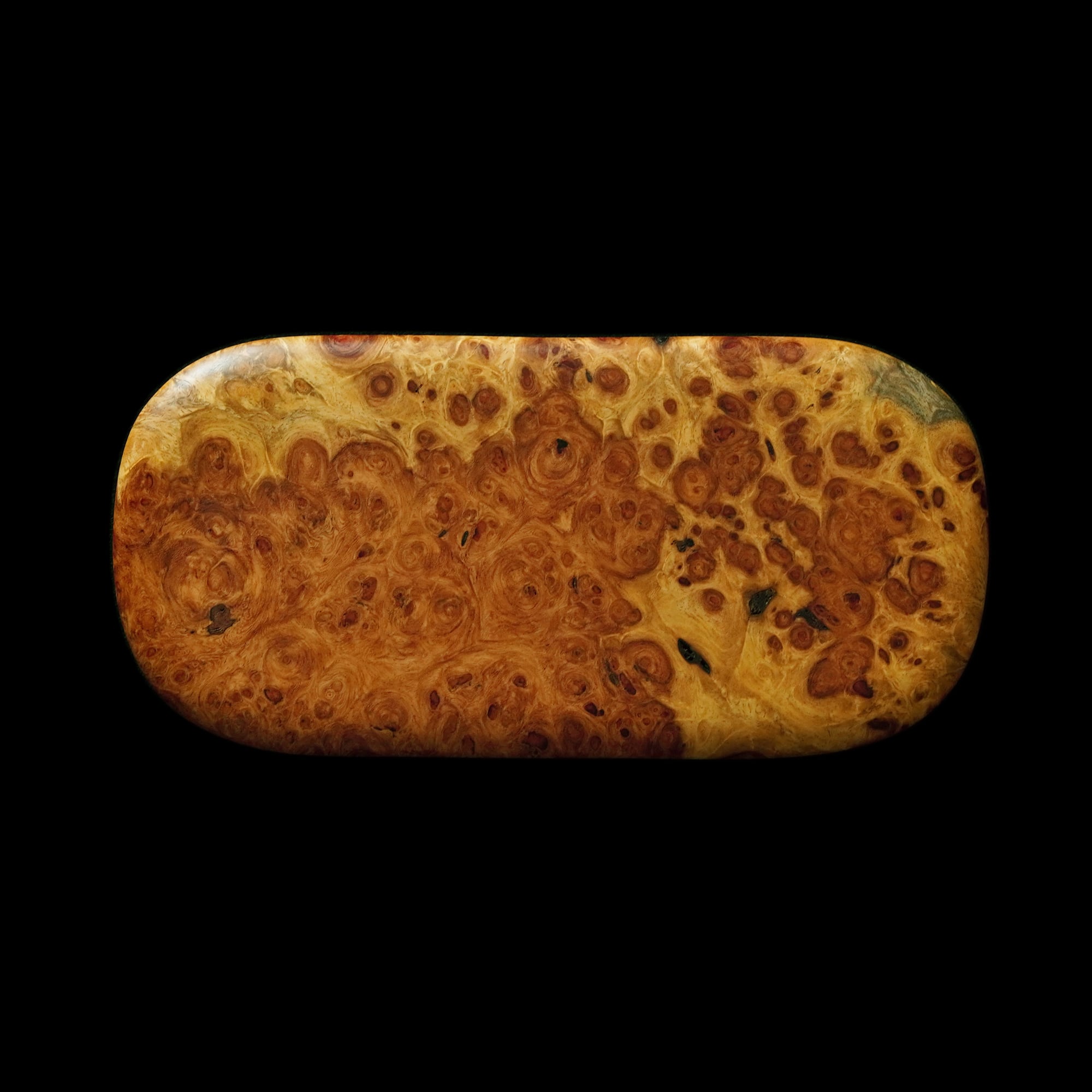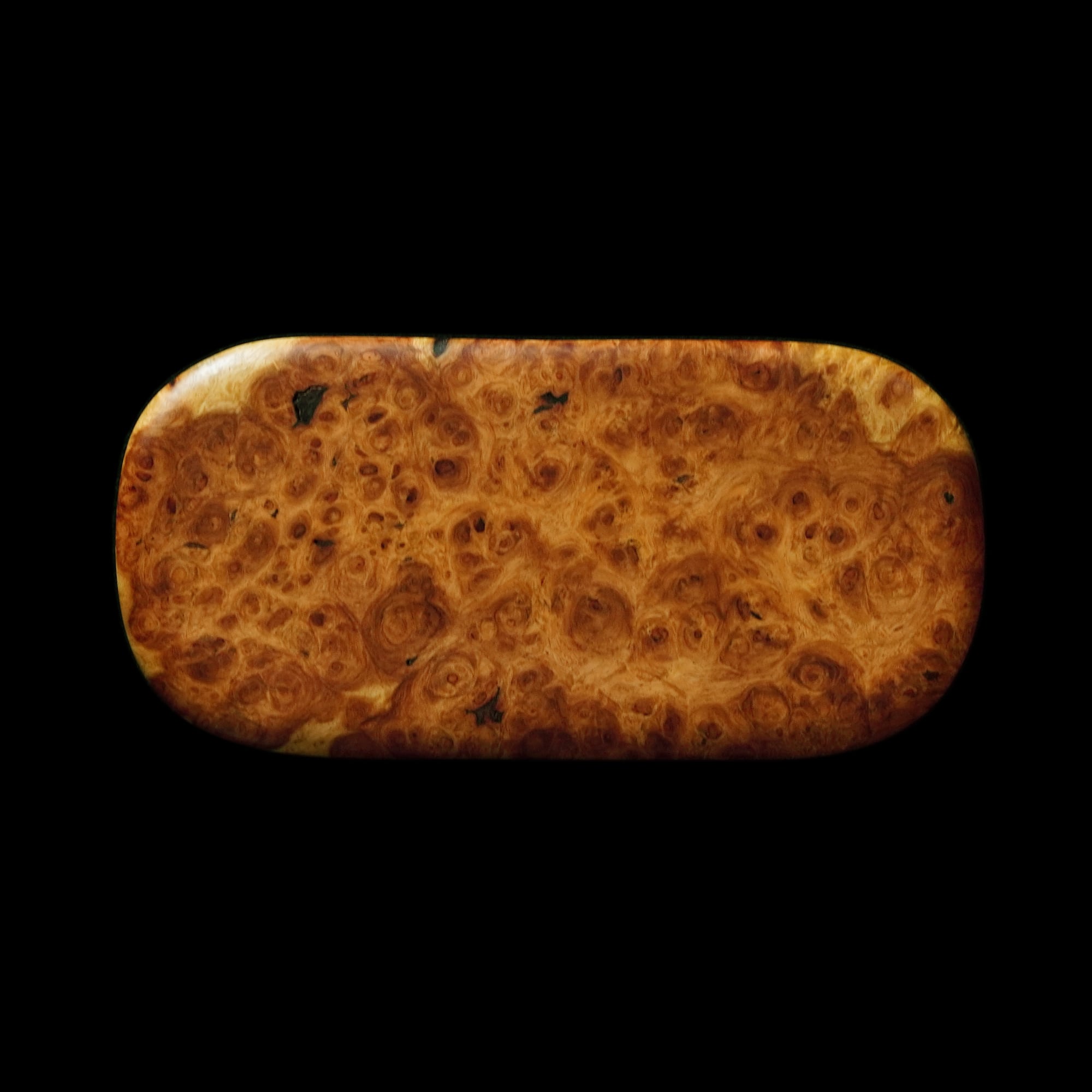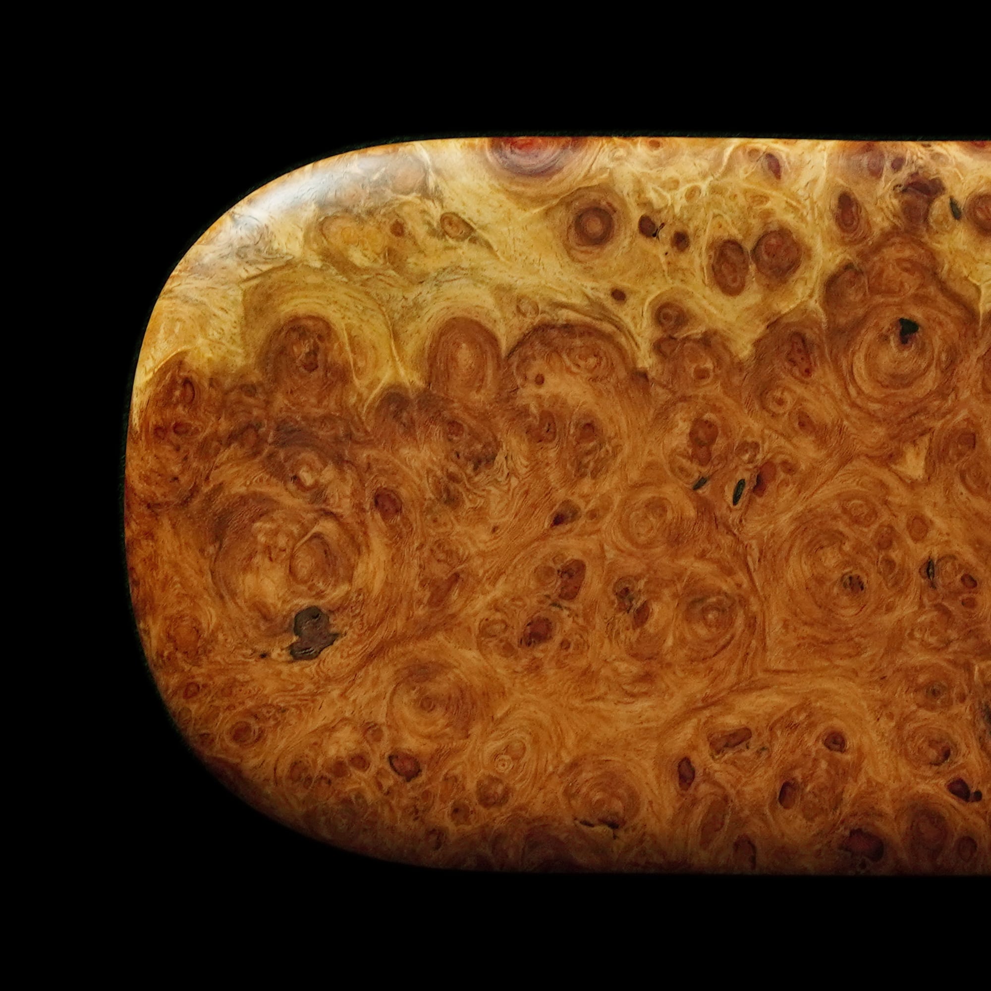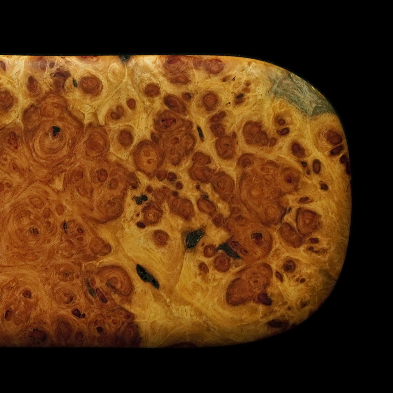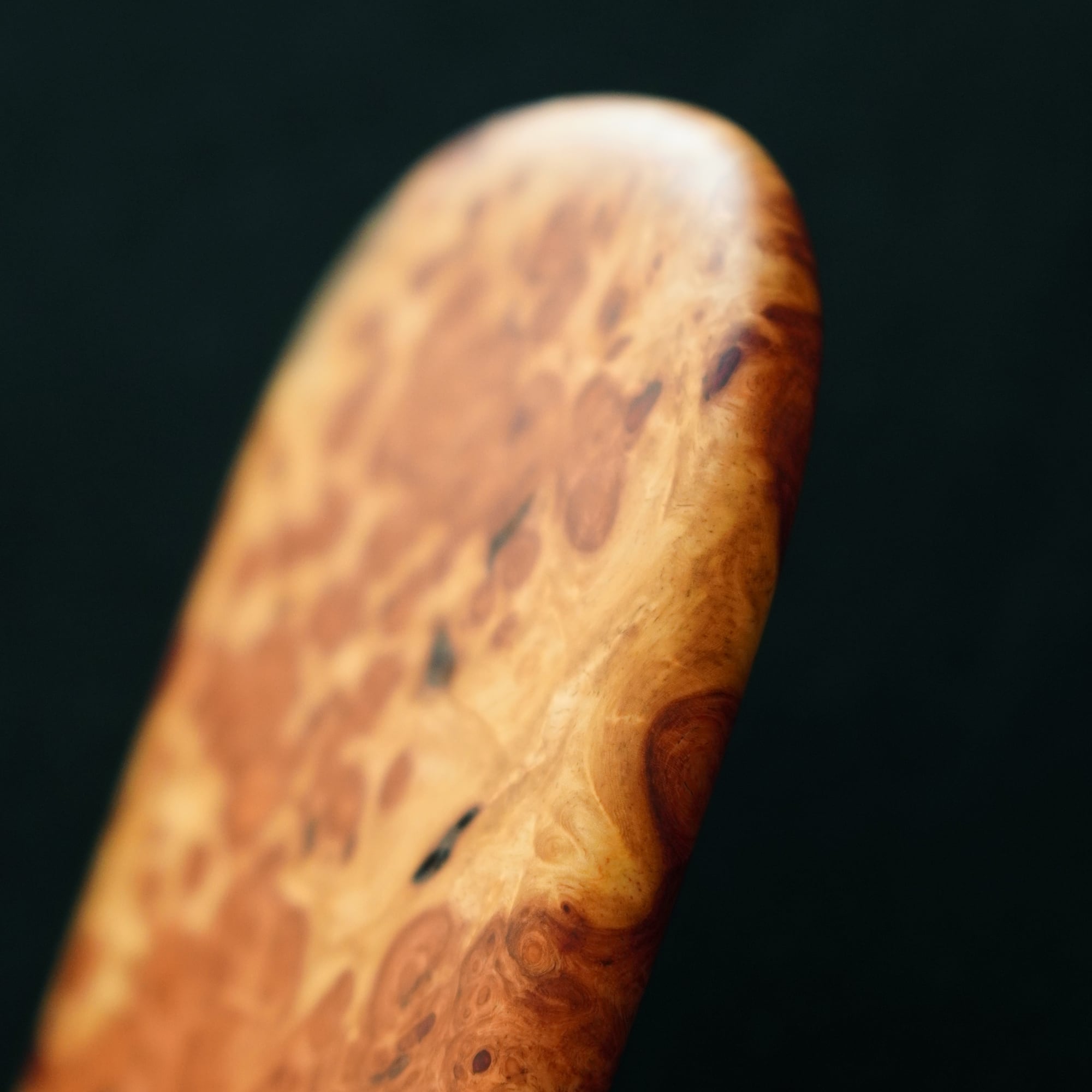 長期間に渡り自然乾燥された木材のみを厳選し、銘木の材質や模様に合わせてひとつひとつ丁寧に磨きあげています。研磨後はシリカを主原料とした撥水性や防水性のあるセラミック塗料で複数回浸透と乾燥を繰り返し、蜜蝋ワックスで仕上げております。すべて食品安全基準試験をクリアした塗料を使用。木材の加工のため研磨時の細かなキズ跡が残る場合がありますがご了承ください。